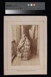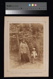 A photograph depicting a standing woman and a toddler in the national costumes. Extent: 1 photograph. Size and dimensions of original material:…