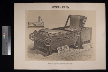 A photograph depicting a machine on a white background. Extent: 1 photograph. Size and dimensions of original material: Height 28cm, width 52.5cm.…