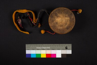 A damaru / swivel drum. A musical instrument for use in tantric rituals. Extent: One swivel drum.Size and dimensions of original material: 10 x 10…