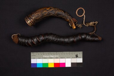 Two animal horns. According to the owner, these are the horns of mythical creatures. Both coming from the realm of the nagas and originally from…