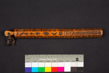 A painted wooden staff used by the nyahon, the head of the group of wedding singers. The staff is an important element in the performance of the…