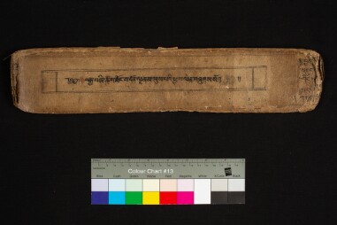 A handwritten Tibetan text (pecha) on handmade paper. Written in both "headed" Tibetan dbu chen (Uchen ) script and "headless"…