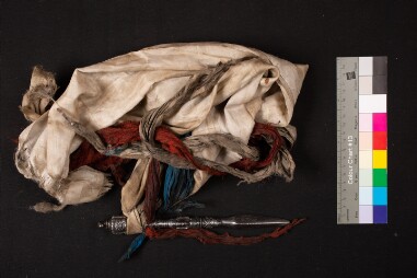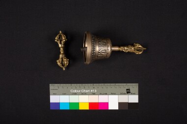 A bell and vajra / dorje. Two ritual items stored and used together. Extent: One bell and one vajra.Size and dimensions of original material: Bell…