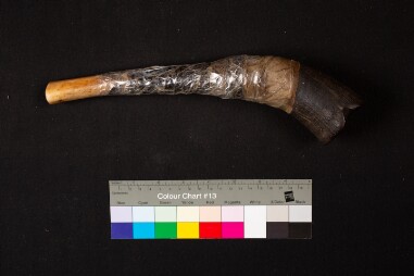 A human thighbone trumpet. A common tantric artefact. Made, according to the owner, from the arm of a 25 year old woman. (it is usually the femur…