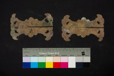 Two brass stands for the human skull cup. Extent: Brass stands.Size and dimensions of original material: 13 x 8 cm.Arrangement: Kept in the prayer…