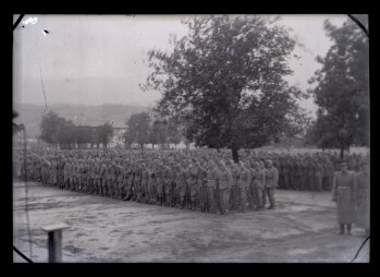 JNA soldiers in formation during a military celebration.Војници на ЈНА во строј за време на воена прослава.Extent: 1 sheet film negative.Size and…